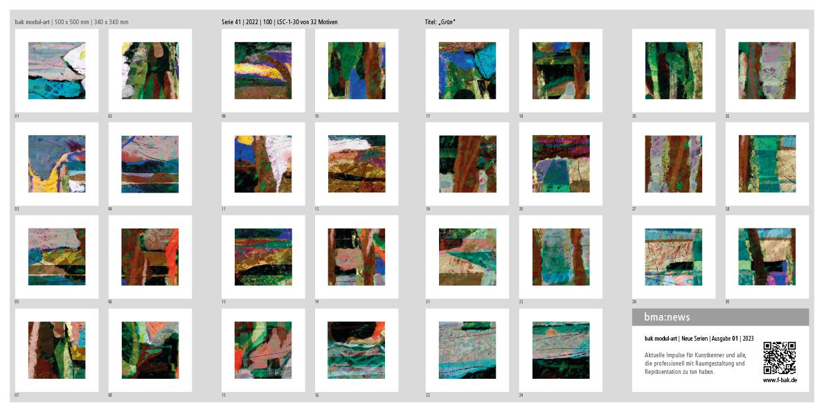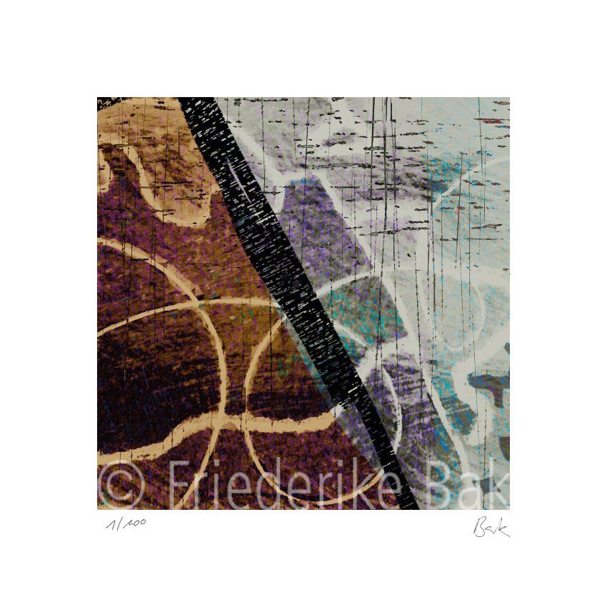 L'art numérique a fait évoluer ma pensée et mon travail créatifs, mais n'en a pas modifié le principe. Beaucoup de mes motifs de série bak modul-art se prêtent donc aussi à une production en grand format.